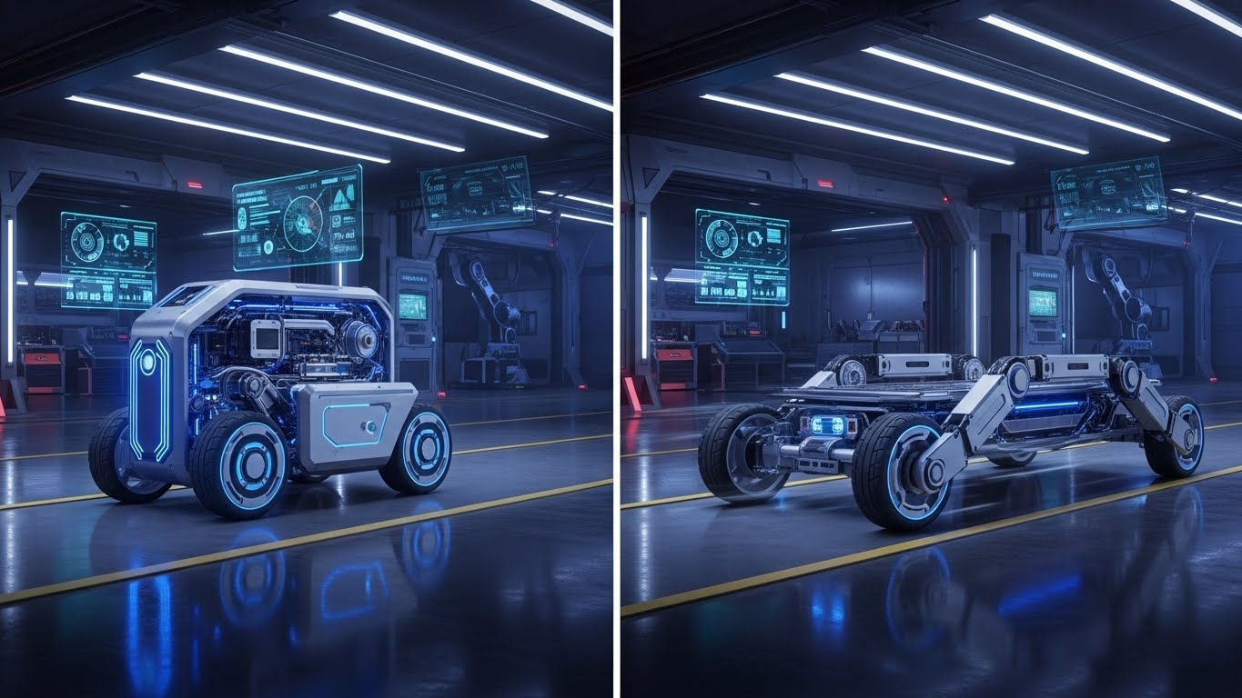 모바일 엑센트릭 드로이드는 현대차 모베드의 정체성을 가장 잘 설명해 주는 핵심 용어로, 기존의 고정된 바퀴 축 개념을 탈피한 혁신적인 설계 방식을 의미합니다. 모바일 엑센트릭 드로이드 기술의 핵심은 각 바퀴가 독립적인 동력과 조향, 그리고 서스펜션 기능을 갖추고 있어 마치 살아있는 생명체처럼 유기적으로 움직인다는 점에 있습니다. 현대차 모베드는 이러한 모바일 엑센트릭 드로이드 메커니즘을 통해 제자리에서 360도 회전하거나 대각선으로 이동하는 등 좁은 공간에서도 자유자재로 기동할 수 있는 탁월한 능력을 보여주는데요. 모바일 엑센트릭 드로이드 플랫폼은 사용자의 필요에 따라 상단에 어떤 모듈을 결합하느냐에 따라 유모차부터 방송 장비 거치대까지 용도가 무한히 확장되는 것이 특징입니다.