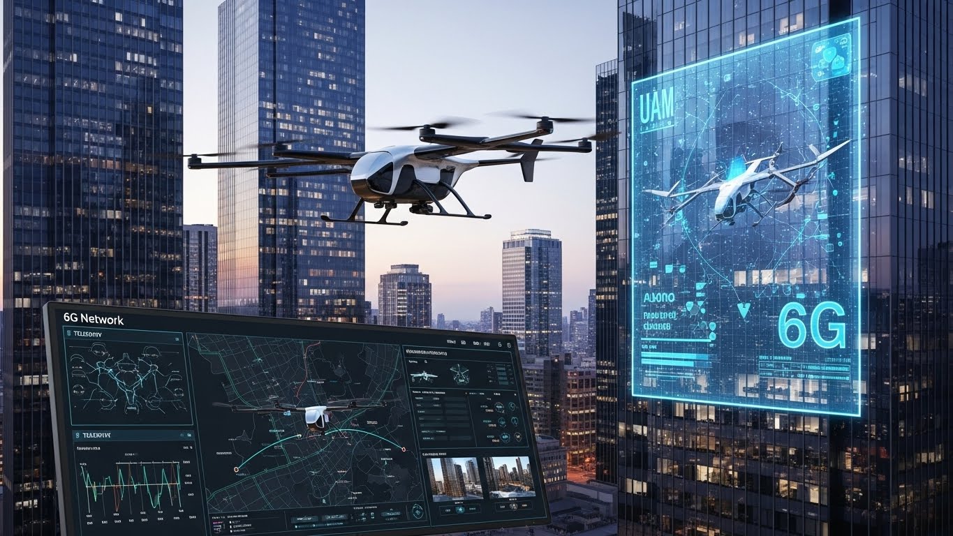 도심 항공 모빌리티(UAM)는 6G의 핵심 수혜 분야입니다. 하늘을 나는 택시가 안전하게 비행하려면 지상뿐만 아니라 공중에서도 끊김 없는 통신이 보장되어야 합니다. 기존 통신망은 고도 제한이 있지만, 6G는 지상 10km 상공까지 커버리지를 확장하는 '초공간' 기술을 제공합니다. 6G 네트워크는 수많은 UAM 기체를 실시간으로 관제하고 충돌을 방지하는 하늘길의 신호등 역할을 하게 됩니다.