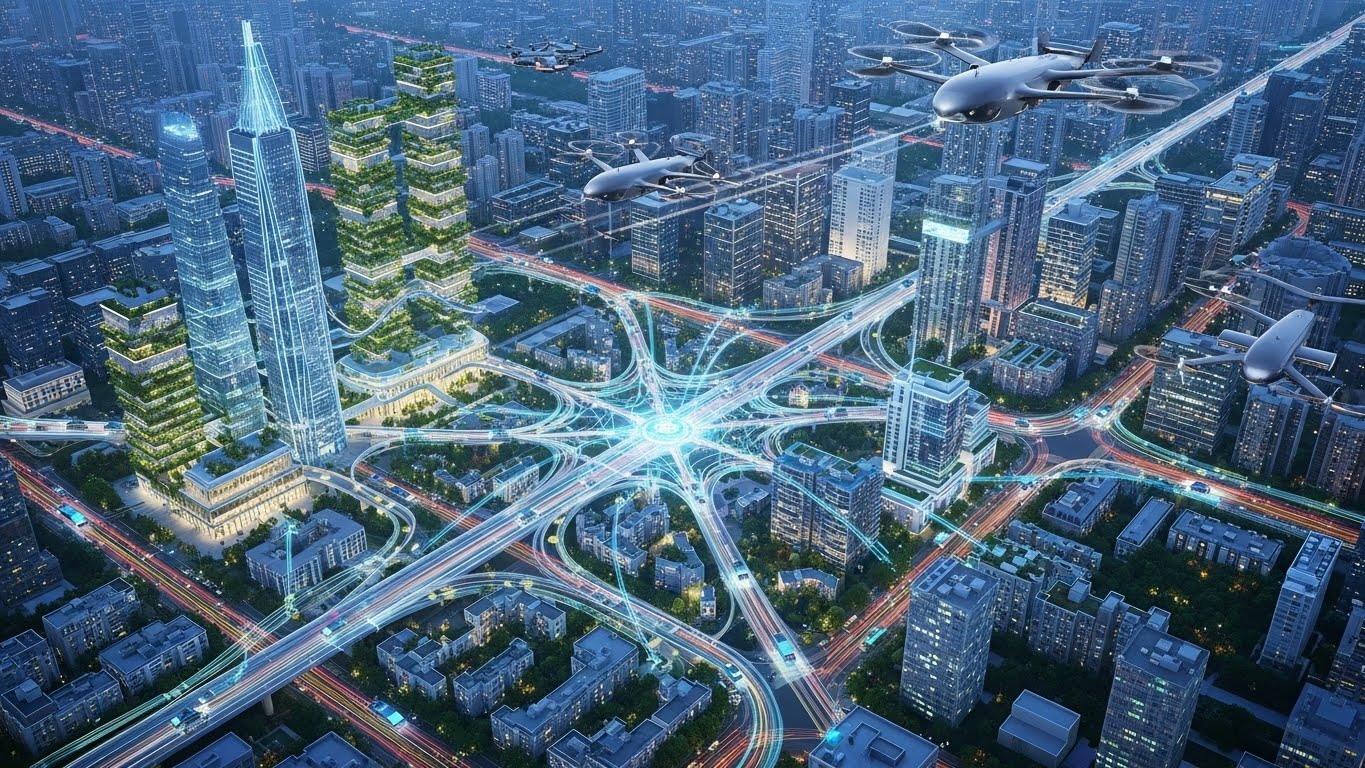 도심 항공 모빌리티(UAM)는 6G의 핵심 수혜 분야입니다. 하늘을 나는 택시가 안전하게 비행하려면 지상뿐만 아니라 공중에서도 끊김 없는 통신이 보장되어야 합니다. 기존 통신망은 고도 제한이 있지만, 6G는 지상 10km 상공까지 커버리지를 확장하는 '초공간' 기술을 제공합니다. 6G 네트워크는 수많은 UAM 기체를 실시간으로 관제하고 충돌을 방지하는 하늘길의 신호등 역할을 하게 됩니다.