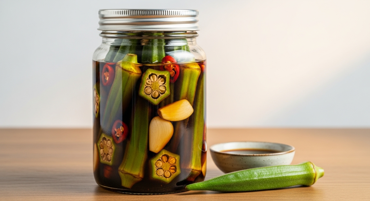 오크라 장아찌는 별 모양 단면을 오래 두고 감상하며 즐길 수 있는 대표적인 오크라요리입니다. 간장, 식초, 설탕, 물을 끓인 절임물을 오크라에 부어 숙성시키면 새콤달콤하고 아삭한 맛이 일품입니다. 고기 요리와 함께 먹으면 느끼함을 잡아주어 찰떡궁합을 자랑합니다. 오크라 장아찌는 한 번 만들어두면 오래 보관할 수 있어, 오크라를 대량으로 구매했을 때 활용하기 좋은 레시피입니다.