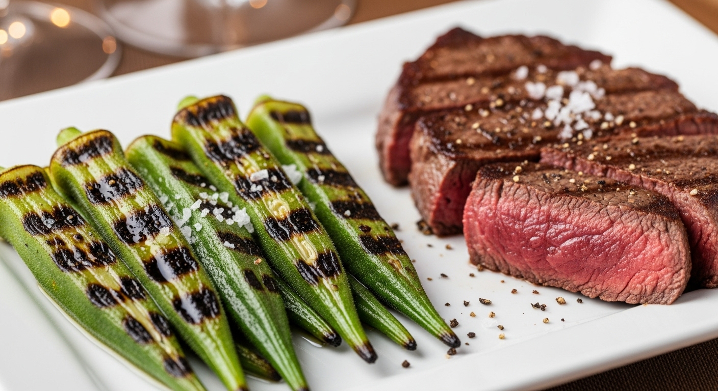오크라 구이는 오크라 본연의 맛을 가장 심플하게 즐길 수 있는 대표적인 오크라요리입니다. 손질한 오크라에 올리브유를 바르고 소금, 후추로 간을 한 뒤 에어프라이어나 프라이팬에 굽기만 하면 됩니다. 구운 오크라는 겉은 쫄깃하고 속은 부드러운 식감을 자랑하며, 담백하고 고소한 맛이 특징입니다. 스테이크나 생선 요리의 가니쉬(곁들임 음식)로 활용하면 식탁의 품격을 높여줍니다.