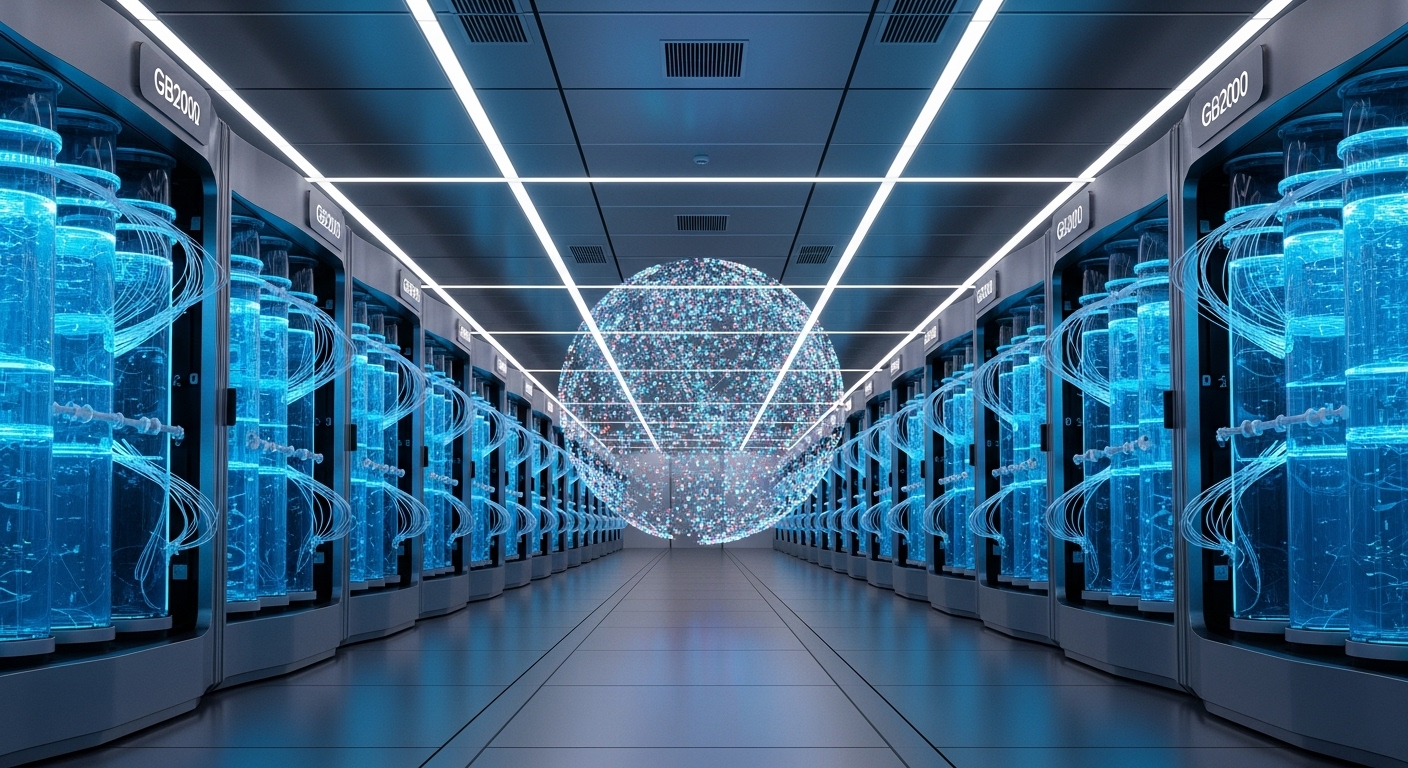 AI 슈퍼컴퓨터의 개념은 블랙웰칩과 함께 완전히 새로운 차원으로 진화했습니다. 엔비디아는 2개의 B200 GPU와 1개의 그레이스(Grace) CPU를 결합한 ‘GB200 슈퍼칩’을 공개했습니다. 더 나아가, 36개의 CPU와 72개의 GPU를 NVLink로 연결한 액체 냉각 방식의 랙 스케일 시스템인 ‘GB200 NVL72’는 1조 개 파라미터 모델의 추론 성능을 이전 세대 대비 최대 30배까지 향상시킵니다. AI 슈퍼컴퓨터의 전력 소비와 비용 역시 최대 25배까지 절감할 수 있습니다. 이는 데이터센터 규모의 AI 슈퍼컴퓨터 구축과 운영 방식을 근본적으로 바꾸는 혁신입니다.