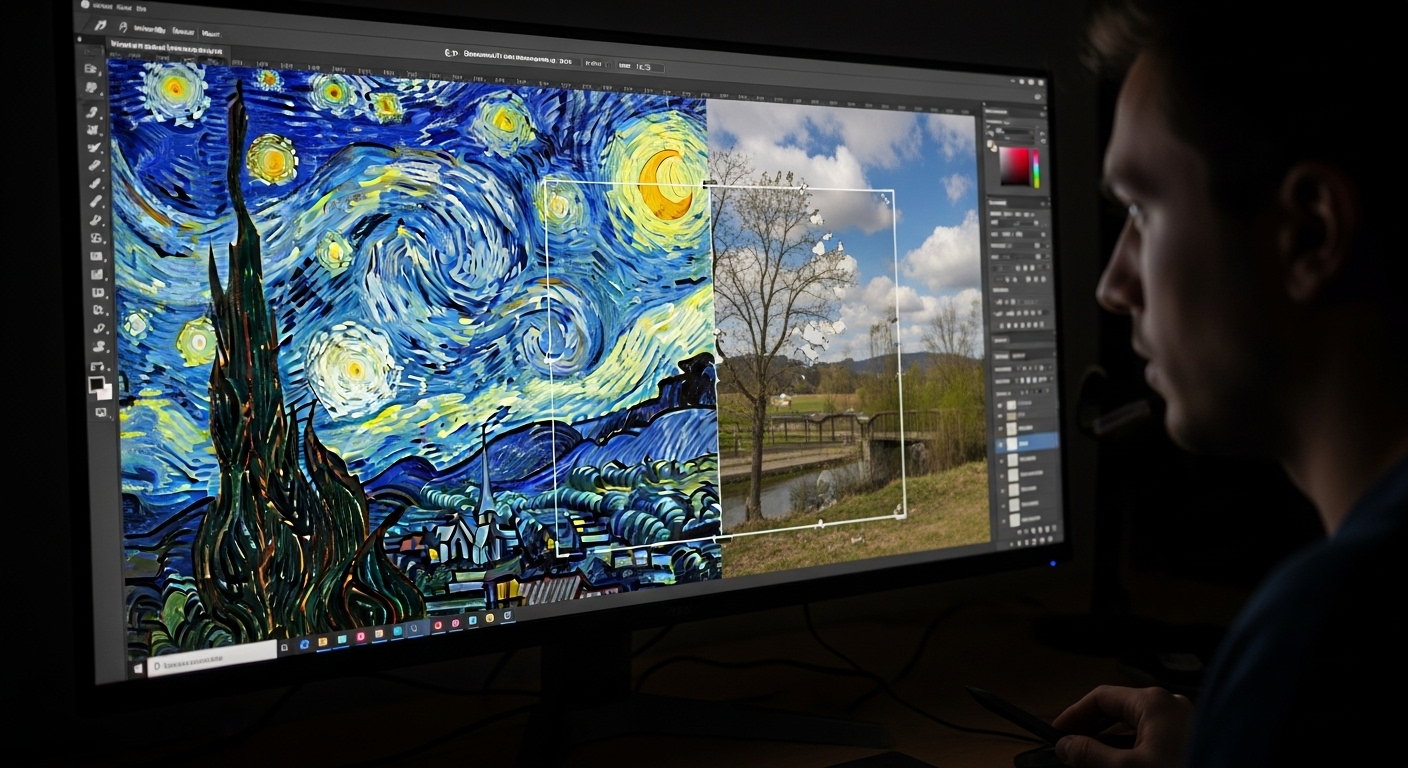 포토샵 AI 기능은 이제 전문가의 보조 도구를 넘어, 창작의 중심 엔진으로 자리 잡았습니다. 새로 추가된 ‘생성형 채우기(Generative Fill) with 참조 이미지’ 기능은 사용자가 업로드한 특정 이미지의 스타일과 분위기를 그대로 학습하여 선택 영역에 적용하는 획기적인 기능입니다. 예를 들어, 특정 화가의 유화 질감을 가진 이미지를 참조 파일로 제시하면, 내 사진의 일부를 그 화풍으로 자연스럽게 채울 수 있습니다. 또한, 포토샵 내에서 직접 텍스트 프롬프트로 고품질 이미지를 생성하는 ‘이미지 생성(Generate Image)’ 기능이 정식으로 탑재되어, 외부 AI 툴을 사용할 필요 없이 포토샵 안에서 모든 상상을 시각화할 수 있게 되었습니다.